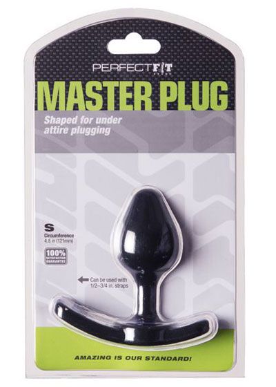 You get an insertable length of 8,9 cm with an anal safe 10,8 cm wide flat base. The Perfect Fit Master Plug Strap On Small Butt Plug has a classic spade shaped bulb that is 3,9 cm wide the tapers down to a 1,6 cm shaft. The flat base has strap holes for use with a 1,3 cm to 1,9 cm wide straps to fasten this to a harness or chastity style belt.