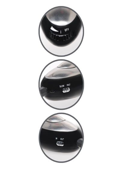 Choose a setting on the control unit's dial to control the intensity and go from a sensuous tingle to a throbbing tap in an instant. Switch between "SLOW" or "FAST" to control the frequency of the shock, and adjust the dial to control the strength of the shock.