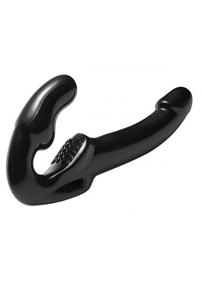 With this strap-free strap on dildo, there will be nothing between you and incredible partner penetration. No harness is required. The ergonomically curved bulb is designed to slip inside and be held in place by the PC muscles. The waterproof design is completely enclosed, with a firm material and semi-realistic shape. There is a textured pad that is designed to stimulate the clitoris of the wearer, as the specially angled tip provides direct G-spot sensation. Provides simultaneous pleasure for both partners with a svelte and elegant design.