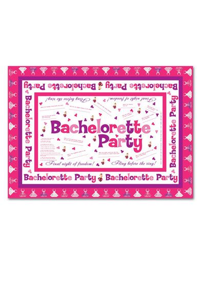 A great way to liven up the bachelorette party, this colorful tablecloth is much more than simple decoration. Included on this 7 by 5 foot cloth is a trivia game printed right onto the surface, plus 4 sharpies. Have the girls write their answers to the questions (which are all about the bride in her single days) during the night, and present it to her as a souvenir.