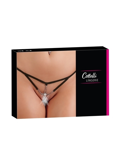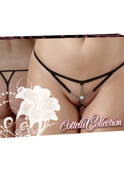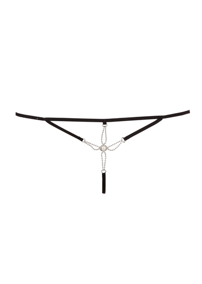 Exciting string in a strap design with elaborate pearl decoration over the open crotch.