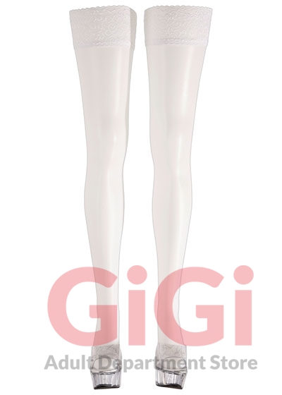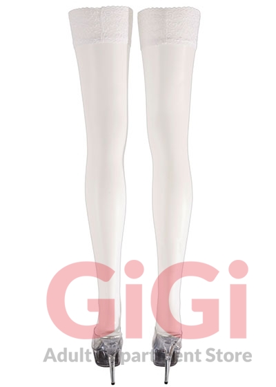 Hold-up stockings with a 7 cm wide lace top part. In a beautiful white color for exciting appearances. 17 denier. Oeko-Tex certified.