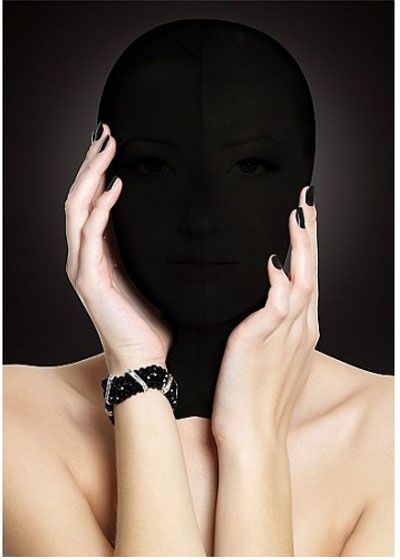 This comfortable Subjugation mask is designed to stretch completely over the head and closes easily at the back with a zipper. The fabric allows just a hint of light in while impairing vision and awakening other senses. The shiny hood can be worn by him or her, and the thin lightweight fabric allows breathing and hearing a snap.