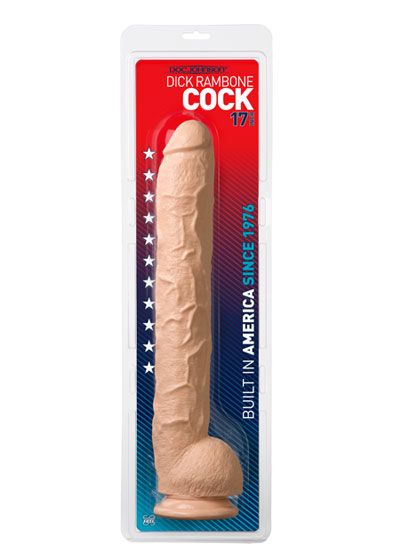 Doc Johnson's Dick Rambone Cock is an enormous dong that will never leave you wanting more. Molded from the eponymous porn star, famous for his well-equipped tool, this monster cock with veined shaft will fill users an amazing fifteen inches deep. Brave the Rambone hands-free with the dependable suction cup base, or partner up for extreme strap-on harness play. It is made from non-phthalate body-safe material, which includes Doc's anti-bacterial Sil-A-Gel formula. Available in Black and White. Proudly made in America