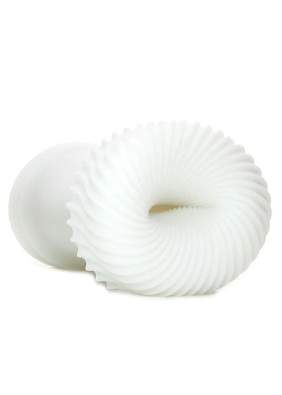 An ultra unique masturbator from innovative Tenga, this Japanese designed self love must-have perfectly combines aesthetics with undeniably pleasurable functionality. A pure white sleeve is textured in never before seen 3 dimensional patterns- you can see see exactly what you'll be feeling, as what seems to be the exterior, at first glance, is actually the interior. Once flipped inside out, you'll be faced with a smooth, nondescript surface that hides the true purpose discreetly within. The Zen version is; quoting Tenga, 'a soothing form of relief', it's made up of subtle ribs that curve and twist their way down the length, creating an incredible sensation that you'll need to experience to be able to describe. Aside from the intense texture, the Zen is close-ended, which allows exciting suction to build up naturally as you thrust. Made from safe, soft, antibacterial elastomer, this nonporous material is incredibly easy to clean and maintain, plus, it warms up quickly to body temperature as you play, providing a feel that almost exactly mimics real skin. You'll be able to use both water and silicone based lubricants with your Zen, just avoid oil based products as they can degrade the elastomer over time. You'll adore how easily hits masturbator stores away on the included stand, which also keeps the sleeve upright so it dries faster after cleaning. Tenga 3D masturbators are 4 1/2 inches long, with a good bit of stretch, accommodating most men. It's about 6 inches around, with a width of 2 inches.