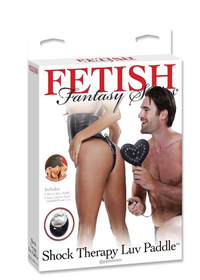 Fetish Fantasy Series Shock Therapy Paddle. Give your sex life a charge with the Shock Therapy Luv Paddle. Perfect for beginners, spanking fetishists, and those new to electro sex, this paddle plugs into the electro power unit and provides thrilling e-stimulation. Choose a setting on the power unit's dial to control the intensity and go from a sensuous tingle to a throbbing tap in seconds. Switch between SLOW or FAST to control the frequency of the shock, or adjust the dial to control the strength of the shock. Experience a wild, electrifying spanking session during foreplay or bondage play. The Luv Touch compact control unit sends electrical impulses to the paddle and can be used alone as a hand massager. To use the control as a hand massager, switch to IN mode. The oval centerpiece delivers the shock once your palm touches any other part of the metal. To use the power unit with the paddle, switch it to OUT mode and connect it to the paddle's plug-in jack. Package Depth 1.75 inches. Package Width 8 inches. Package Height11.25 inches. Packaged Weight8.10 ounces. Package Type Box. Features and Functions:Batteries Included, Remote Control, Shocks. Battery information:requires 1 3V CR 2032 Battery, included. Materials: Leather, Metal, ABS Plastic.