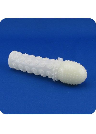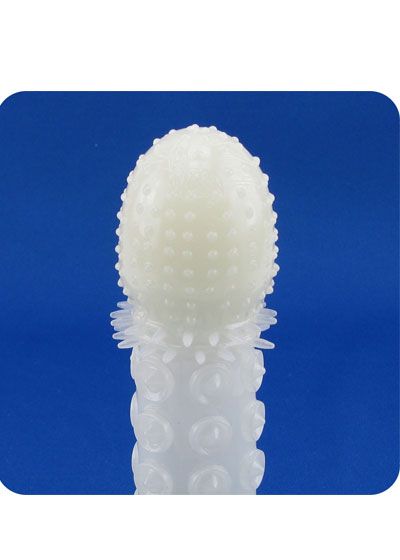 Make a good thing even better with the Glow in the Dark Extension. This highly textured sleeve fits over the penis or dildo to add length, girth and extra stimulation for versatility and maximum enjoyment. The super soft sleeve stretches to fit most, and has a pliable, slightly firmer head for a realistic feeling. The studded head, tickler ring and nubby body just adds to an amazing experience. As the name implies, this extender glows in the dark. Always use a water based lube with this product, and enjoy!