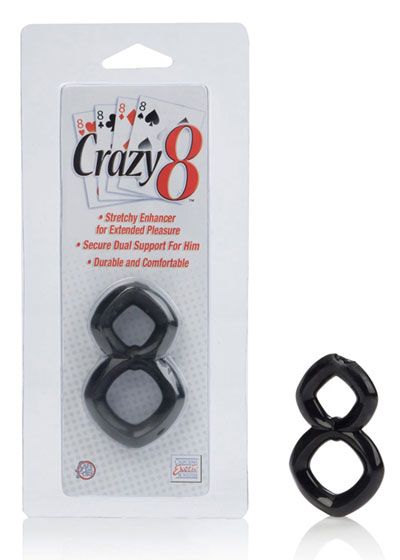 To enhance and extend playtime, the Crazy 8 is a must-have. This unique cock ring fits securely around both the base of the penis and the testicles, keeping sensation under control, as well as preventing blood from leaving the penis, which in turns keeps you harder. Made from a completely body safe material that stretches perfectly to fit most sizes, Crazy 8 cleans up in a snap and requires very little maintenance. Just be sure to use a good water based, rubber compatible lube if needed.