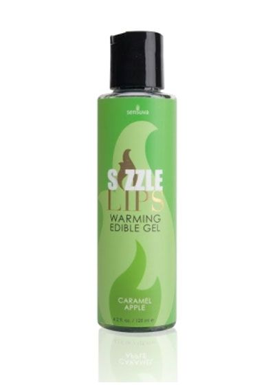 Sizzle Lips Warming Edible Gel Caramel Apple 4.2oz. Make your partner blush with Sizzle Lips, the Edible Warming Gel that feels hot when you blow on it. Massage it into a small area of the body, blow on it to get warm and then kiss lick it all off! The more you rub it in, the warmer it feels. Sizzle Lips is an especially great tasting, glycerin based gel with no after taste.