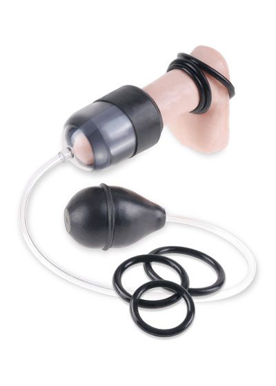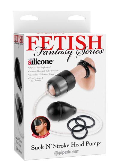 Enjoy intense blowjob-like simulation with the incredible Suck N’ Stroke Head Pump. This easy-to-use tip teaser creates a powerful suction action that stimulates the sensitive nerve endings underneath and around your penis head. With each squeeze of the medical-style pump ball, the soft rubber sleeve clings to your manhood and slides up and down with each pump. Choose a ring size first, slide the ring over the sleeve, fold the sleeve over the pump cylinder, and enjoy a vacuum-tight seal around your head. Be sure to use plenty of Moist® lotion for an extra wet, extra wild encounter!