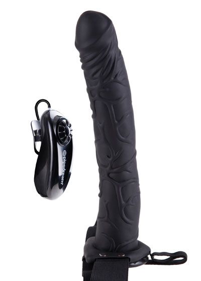 Haven't you always wanted to feel more confident about your size and enjoy satisfying sex with your partner long enough for both of you to reach orgasm? Your lover knows that size does matter—and nothing can fulfill your fantasies and please your partner like a confident man that knows what he’s doing! Now you can have the length and girth you’ve always dreamt of and be all the man you can be with Fetish Fantasy Series' 11" Vibrating Hollow Strap-On with Balls. Say goodbye to embarrassing midway letdowns and say hello to a satisfying smile from your lover!