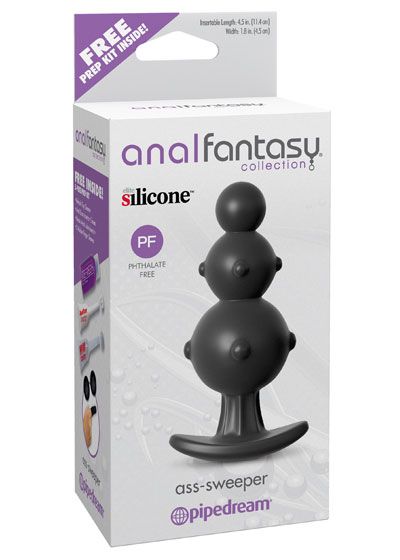 At 1.8″ wide with an insertable length of 4.5″, the Ass-Sweeper has a smooth, round tip for easy entry and three graduated pleasure beads. The narrow neck at the bottom of the plug allows your muscles to wrap around the plug and hold it in, and the ergonomic design of the base ensures that it won't slip too far inside while still fitting comfortably between your cheeks. The smooth silicone balls feature small pleasure nubs that deliver extra stimulation with each thrust and the flared base doubles as a handle so you can pop the beads in and out, one at a time, for explosive satisfaction.
