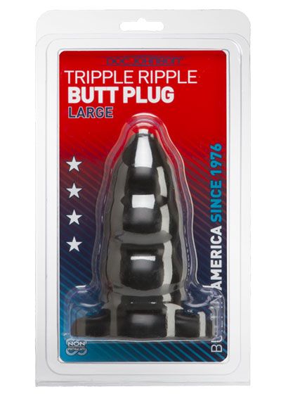 Satisfy your desire for anal adventures with the 6" Large Triple Ripple butt plug. This thick plug has a unique shape that starts off petite at the head then gradually widens and tapers into 3 big bumps for tons of sensation during insertion and removal. The wide base makes it safe, and compatible with an O-ring type harness. As with any anal toy, you'll want to use lots of lube. Water-based formulas works best with our rubber material. Available in Black and White. Proudly Made in America.