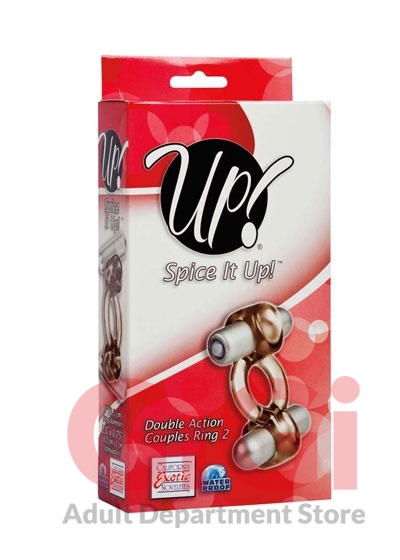 Offering two fantastic vibration points plus a stretchy, ultra comfortable fit and unbelievable texturing for your enjoyment, the Double Action ring from the Up! collection effortlessly provides a host of sex-enhancing functions that playful couples will absolutely adore.