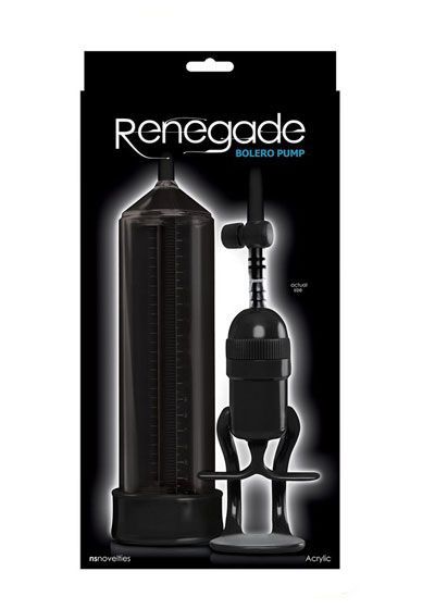 The Renegade Bolero Pump is a sleek penis pump that is designed to get him harder than ever before. The intense design enables one-handed pumping and provides powerful suction for a lasting performance. It also features a measuring ruler on the pump so the user can track his progress. The design has a 22 cm (9 inch) long industrial grade acrylic pumping cylinder, comes with a soft TPE donut base for extra comfort during use and is presented in a contemporary black packaging.