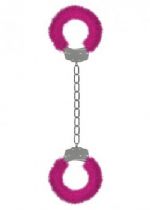 Fantastic, ultra lightweight and practical furry cuffs for the legs made in metal and painted with your favourite colours. This legcuffs links good taste, durability and comfort and are very easy to wear. Lock up your partner and have fun. Ideal for beginners. The locking mechanism has a quick-release button in case you lose both keys. 222 gram.