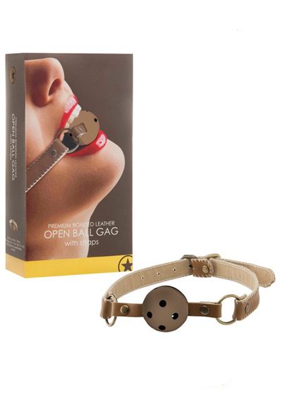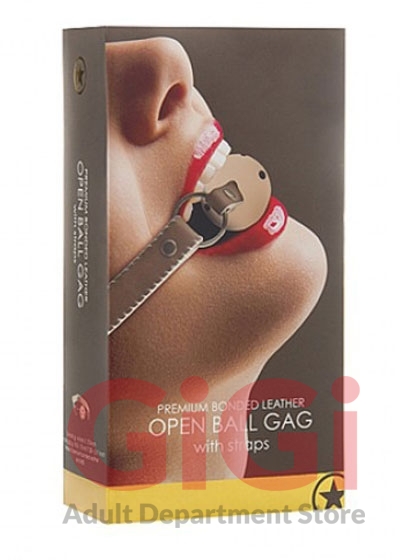 Premium Bonded Leather Open Ball Gag With Straps