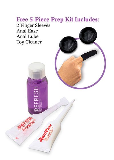 Every Anal Fantasy box features a FREE 5-Piece Prep Kit to help you ease into comfort and clean up afterwards. The kit includes 2 finger sleeves, anal desensitizing cream, anal lube, and toy cleaner.