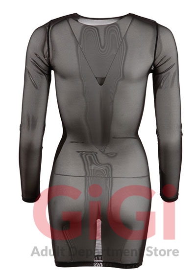 This dress is like a second skin that is figure flattering because it emphasises your curves. There is also no room for a bra or a string - much to his delight… Black powernet dress with long sleeves and a round neckline. 90% polyamide, 10% spandex.
