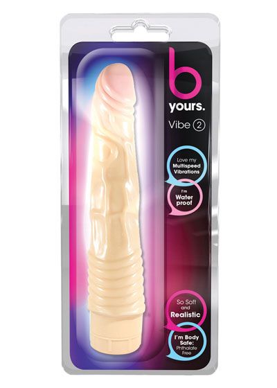 Blush Novelties Basically Yours Cock Vibe #2 is an 9 inch realistic vibrator with veins and twist dial base for multi-speed vibration. It’s tapered head and thin shaft can be comfortably and easily inserted. Created for the beginner and for the cost conscious, Cock Vibe #2 is made of phthalate free PVC and powered by 2 AA batteries, not included. Length 9″, Insertable length 7.5″, width 1.5″, circumference 5.5″
