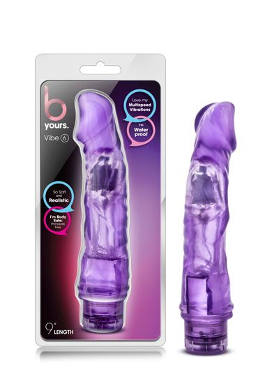 The B Yours Vibe 6 will rock your world. B Yours Vibe #6 is an 9 inch realistic vibrator with a prominent head. The twist dial base provides multi speed vibrations and is waterproof for shower and bath time. The perfect choice for a first time toy purchase and for the cost conscious. Made of Phthalate Free PVC, this toy is body safe and easy to clean! Just wash with warm soap and water, or your favorite toy cleaner, before and after every use. Pat dry with a soft towel before storing.
