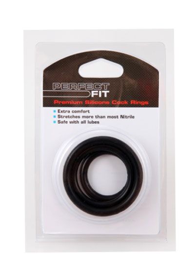 Perfect Fit 3 Piece Ring Kit Black Silicone For Prolonging Climax. Cock