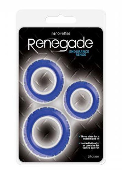 Get your engines started! Renegade Endurance Rings are super stretchable silicone rings in three sizes for unlimited combinations. This 3 pack of treaded cock accessories is suitable for all lubricants.
