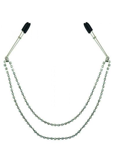 This 20 inches doubled strand of sparkling bling will give you a formal feeling while the rubber tipped nipple clips serve as a constant reminder that all are entitled to feeling a little pain with their pleasure.