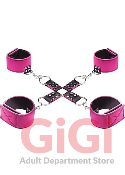 The cuffs that come with this hogtie are designed with a PU leather and a neoprene side, this allows you to choose the material you will feel on your skin by simply turn the cuffs around. The Neoprene side is colored and the PU leather side is black for a rougher look! Also they feature a Velcro lock what means they will fit almost everyone, a snap-closure system to assure it’s interchangeable with other bondage toys and also it allows you to combine other colored cuffs!