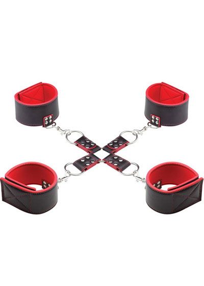 - The Velcro lock feature also means the reversible hogtie cuffs will fit almost everyone, while a snap-closure system assures that it is interchangeable with other bondage toys!