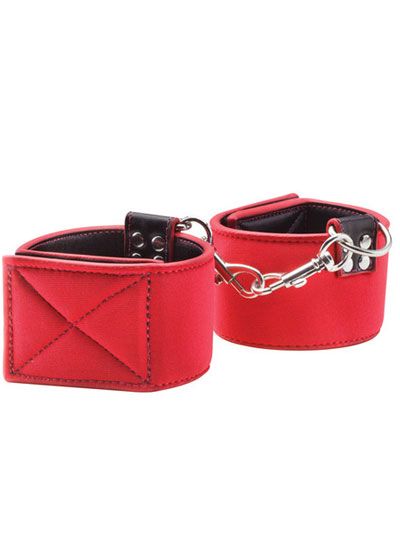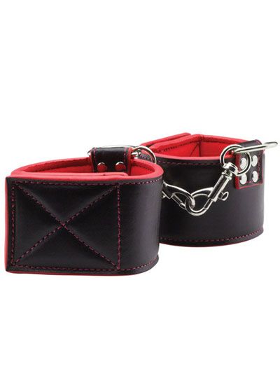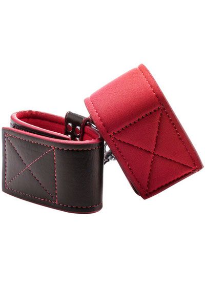 These cuffs are designed with a PU leather and a neoprene side, this allows you to choose the material you will feel on your skin by simply turning the cuffs around. The Neoprene side is colored and the leather side is black for a rougher look! Also they feature a Velcro lock which means they will fit almost everyone, and a snap-closure system to assure it’s interchangeable with other bondage toys!