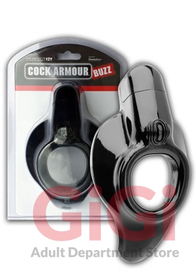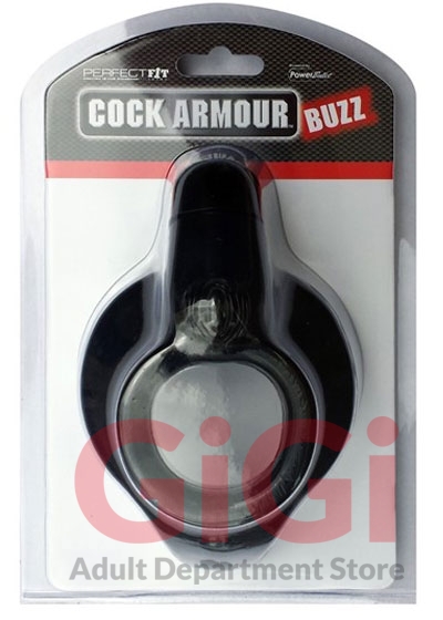 Cock armor buzz black is a vibration product for men. It uses perfect fits revolutionary body fit design which fits like no other product. It is extremely comfortable and secure fitting. The amazing shape allows for the vibration bullet to be located in the perfect placement providing an electrifying experience that is pleasurable for both partners. The innovative design and incredibly stretchy material makes it possible to fit most men of any size length or girth and will stimulate most partners when the 3 speed vibrating stem is turned on. The body-fit shape is a perfect fit innovation and uses a concave form that integrates to the male anatomy providing him confidence when using the product. Cock armor buzz is made of pf blend which is a proprietary blend of silicone and tpr developed to provide superior stretch comfort and durability. Safe to use with most lubes. It is not compatible with latex. Perfect fit brand products are sold and intended for use strictly as adult novelty toys for entertainment. They are not intended for medical use and have not been clinically tested. No medical claims are warranted or implied by the use of these products. Cock armor buzz from perfect fit brands.