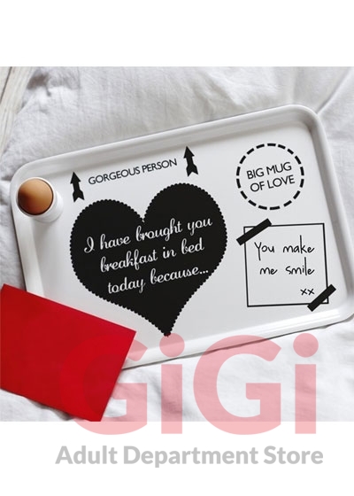 Want to treat your sweetheart to breakfast in bed? Serve them something scrumptious on this utterly adorable Breakfast in Bed Love Tray. It comes complete with a place for their plate and mag, along with a space for you to write your own message of love with the included whiteboard pen.