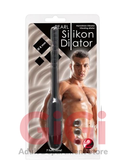 Black vibrating dilator with 7 vibration modes at the touch of a button. Complete length approx. 19 cm, wand length 10.5 cm, Ø approx. 8 mm. A seamless finish for easy insertion. Material: silicone, ABS, phthalate-free according to EU Regulation REACH. Includes button cell batteries.