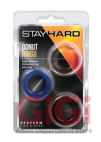 Perform like the stud you are! These Stay Hard Rings are a simple seductive add on to prolong your erection so you can prolong your sessions with your partner! Stay Hard cock rings provide amazing benefits as these can be used around the shaft or both the shaft and testicles to increase both your size and stamina. This trio of cock rings are also made of super stretchy Elastomer for your safety and hygiene during your intimate play. So pick this Elastomer Donut Ring Trio by Blush up tonight, you and your partner will love your bigger, harder erection that lasts longer!