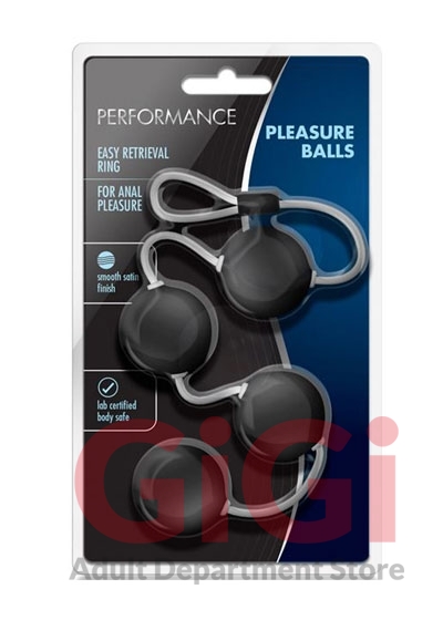 Take anal play to the next level with the performance pleasure balls. Pleasure balls are the ultimate anal beads with a smooth texture forfort. Just like kegal balls for women, these weighted anal beads will allow you to work your pelvic floor muscles for stronger orgasms. With 1. 25 inches of width, it is the perfect size for those looking for the next level in anal beads. The easy retrieval loop makes these easy for your or your partner to insert. Find find extreme pleasure with these pleasure balls! this toy is made of abs plastic; making it nonporous, fragrance free, body safe, and easy to clean!