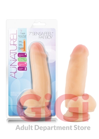 Au Naturel 7 inches Sensa Feel Fat Boy Dildo Beige. Feel. Soft realistic feel with just the right amount of firmness for a better than real experience with Sensa Feel technology. Versatile strong suction cup base, suction cups will stick to all smooth flat surfaces! It is also harness compatible. Stays erect. Utilizing a unique integrated spine. Our dildos can be extra soft yet still remain rigid and erect. Perfect size with 5.25 inches of insertable length and 2 inches of girth. Peace of mind. Made from body safe materials and meets or exceeds CE and ROHS international safety standards. Phthalate free, fragrance free and latex free. 7.5 inches in length, 5.25 inches insertable, 1.8 inches in width. Thermoplastic Elastomers TPE.