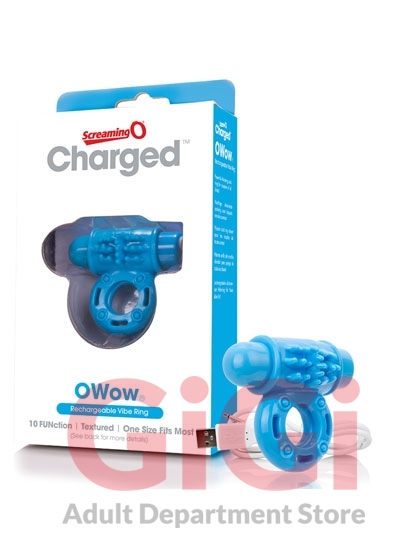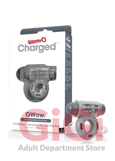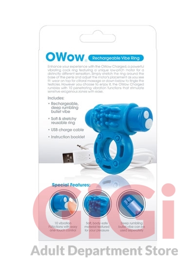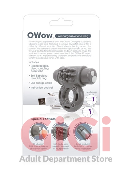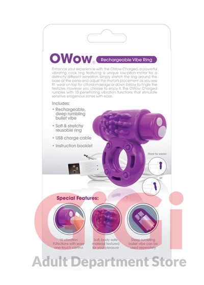 The Charged OWow is the ultimate rechargeable vibrating cock ring, featuring a brand new low-pitch motor for a distinctly different sensation that both partners can feel deep inside. This powerful sex toy for couples boasts 10 penetrating vibration and pulsation functions that rumble, rather than buzz, and provide an undeniably more satisfying experience. Powered by the famous Vooom bullet, the Charged OWow stretches wide to fit most sizes thanks to the ring's soft 100% body-safe SEBS material and fits snug, but not too tight, for an enhanced experience. To enjoy, simply stretch the ring around the base of the penis or penis and testicles (his choice!) and adjust the motor as you like it: wear it on top for rumbling clitoral massage or wear it underneath the penis and testicles for pleasant pressure with added vibration. However you choose to enjoy it, the Charged OWow is easily powered up with a USB charge cable (included) for a 60+ minute vibration time and is completely waterproof - so you can take your new favorite couples toy into the bath or shower!