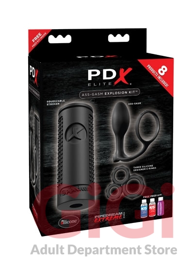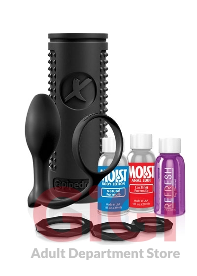 Grip it, squeeze it, and enjoy tight suction with every thrust of this incredible stroker! The flexible handheld size of the EZ Grip Stroker ensures a snug fit, while interior massaging ribs and bumps tease your shaft till you explode! The luxurious silicone Ass Gasm cock ring simultaneously stimulates your prostate and boosts your erection. The plug creates incredible stimulation in your ass, while the attached ring keeps your erection rock hard. The connector between the ring and the plug produces tension both in the front and in the back at the same time. It also causes active stimulation directly on your prostate when you move. The ring will keep you harder, the plug will drive you crazy, the massaging ribs inside the EZ Grip Stroker will milk every inch of your rock hard cock! When its time to climax, expect an out of this world Ass Gasm! Kit includes: Squeezable EZ Grip Stroker, Ass Gasm C-Ring & Prostate Massager. Three free Designer Silicone Cock Rings. Free Prep Kit: Moist Water-Based Body Lotion, Moist Anal Lube, & Refresh Toy Cleaner.