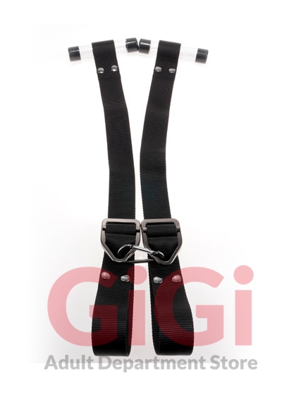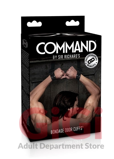 COMMAND. Made to Play Hard. COMMAND’s Bondage Door Cuffs elevate dominating control. Bondage Door Cuffs allow any door to become an instant play party. Two acrylic tubes attached to the ends of the thick, durable industrial-strength nylon straps can be draped over the top of an open door to ensure your partner is safely restrained once the door is closed and locked. At the opposite end of the nylon straps are two Cuffs that wrap each wrist securely and feature fully adjustable stainless steel lock rings, allowing for a controlled, custom fit every time.