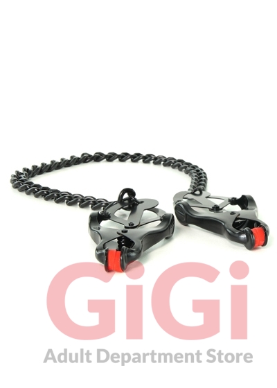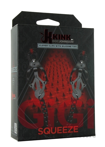 Lending over-the-top pinch to advanced level nipple play, Kink's classic Clover Clips party on the extreme end of the sensation spectrum, providing a tight, unrelenting squeeze that increases with movement, or a tug of the attached chain.