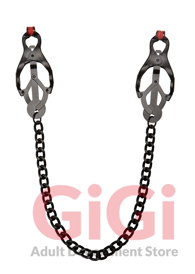 Kink Silicone Nipple Clover Clips with Heavy Chain Black Metal and Silicone Tips