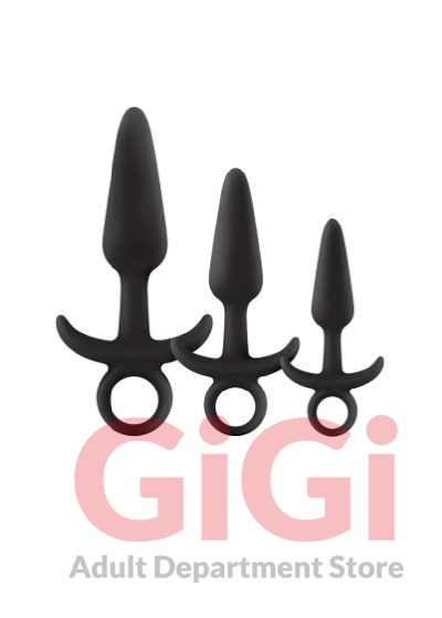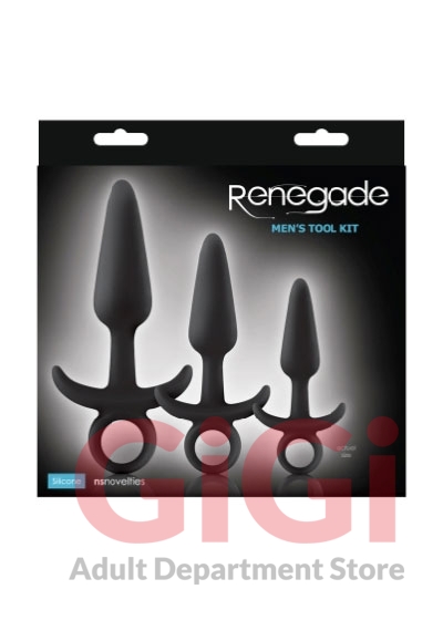 Complete with three seriously sleek temperature-receptive silicone plugs, the Men's Tool Kit offers its trio of identically shaped pieces to pleasure seekers of any anal experience level.