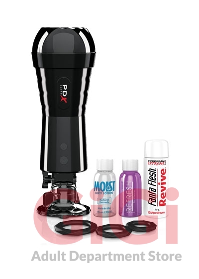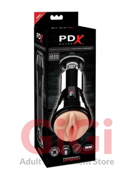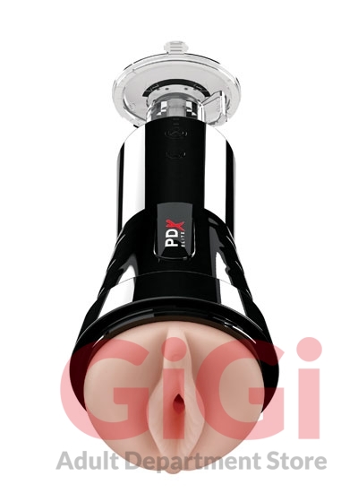 Innovative air bag technology is designed to inflate and deflate while surrounding your shaft with stimulating squeeze and release pleasure. Multiple air bags with multi functions, combined with powerful air-tight suction to milk every inch of your cock, will give you the best masturbation experience of your life! Air-tight suction ensures that tip in or balls deep, the PDX Elite Cock Compressor Vibrating Stroker will give you incredible multi-action sucking and milking masturbation. A super-smooth, lifelike Fanta Flesh interior sleeve lined with massaging ribs, bumps and pleasing textures will fulfill your fantasies with every thrust. For fully automated vibration, simply press the button on the powerful rechargeable motor and enjoy 10 patterns of teasing vibrations that travel all the way up your shaft.Explore your options! The sturdy exterior case features an adjustable locking suction cup that can be attached to any flat surface and adjusted to the perfect angle for hands free fun. Remove the interior Fanta Flesh sleeve for handheld pleasure.