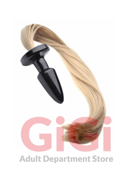 Tailz Pony Tail Anal Plug. This long, sexy pony tail is blonde, smooth, and silky, for movement and fullness with every swing of their hips. The plug is slick and tapered for easy insertion, with a classic shape designed to stay in place. The flared base makes sure it does not go in too far, and makes for easy removal. Brush, flick, and style the blonde strands. They are a great accent and perfect for pony play.