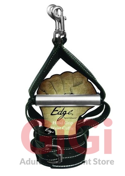 Edge Leather Hand Grip Wrist Cuffs from Sportsheets. Nickel free metal