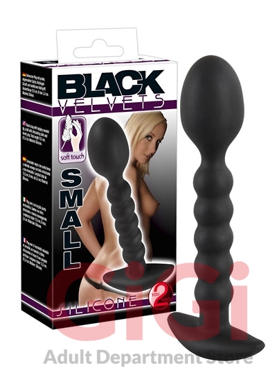 Black anal dildo with a large round tip. The shaft is made up of stimulating beads and there is also a handle. Complete length approx. 13 cm, Ø max. 2.4 cm. Material: silicone, phthalate-free according to EU Regulation REACH.