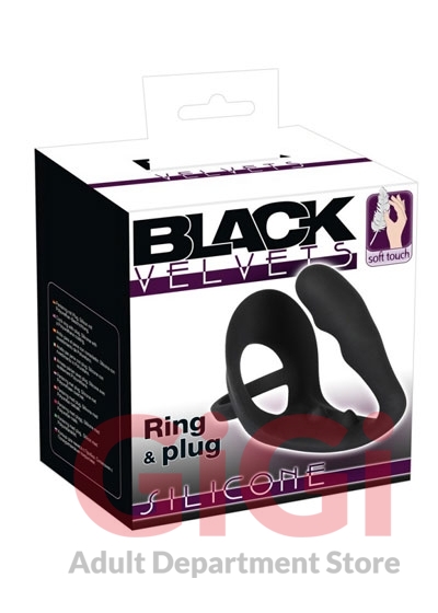 Cock and Balls Ring with Anal Plug "Black Velvets"