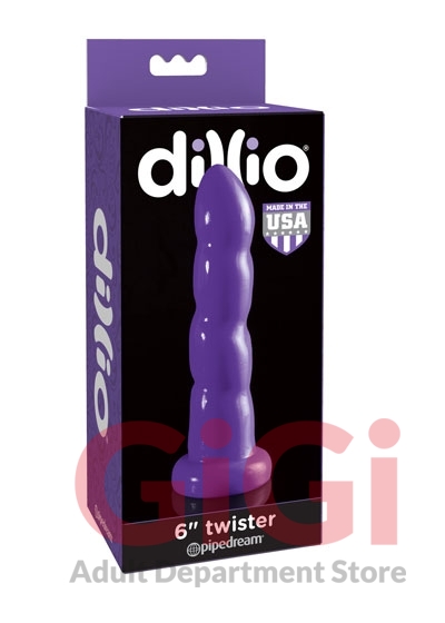 Dillio 6 inches Twister Purple. Pipedreams boutique friendly Dillio line is designed to hit just the right spots every time. With a wide variety of lengths, girths and shapes, the possibilities are endless! Each Dillio features a super strong, suction cup base that sticks to nearly any flat surface for wall banging fun, and is also strap on harness compatible. Feeling adventurous? Try our Double Dillios or specially designed Dillio harnesses with your favorite partner! Crafted from the highest quality, American made rubber, each Dillio is 100% phthalate free and latex free and hypoallergenic. PVC. Made in the USA.