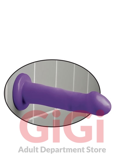 Dillio 6 inches Please Her Purple. Pipedreams boutique friendly Dillio line is designed to hit just the right spots every time. With a wide variety of lengths, girths and shapes, the possibilities are endless! Each Dillio features a super strong, suction cup base that sticks to nearly any flat surface for wall banging fun, and is also strap on harness compatible. Feeling adventurous? Try our Double Dillios or specially designed Dillio harnesses with your favorite partner! Crafted from the highest quality, American made rubber, each Dillio is 100% phthalate free and latex free and hypoallergenic. PVC. Made in the USA.